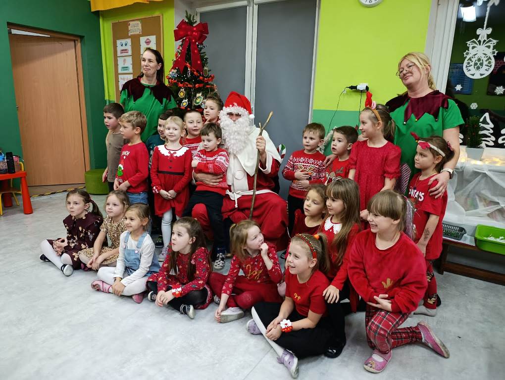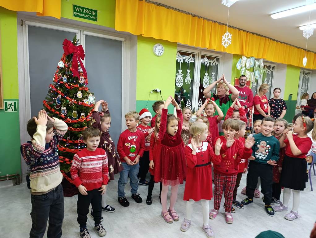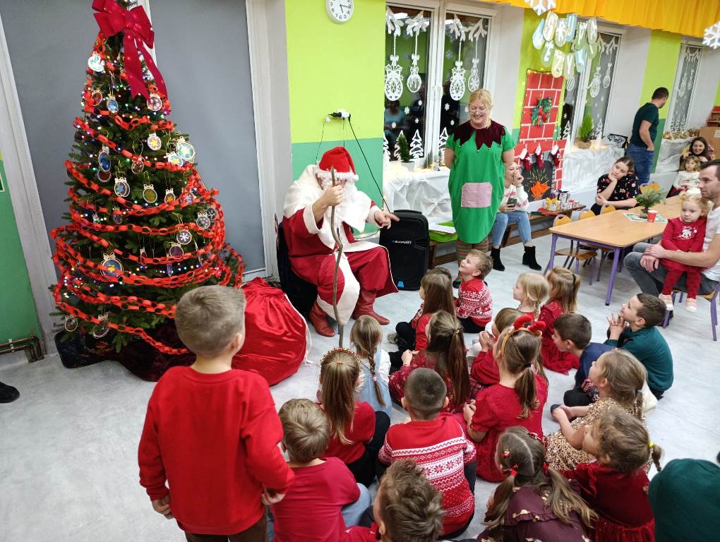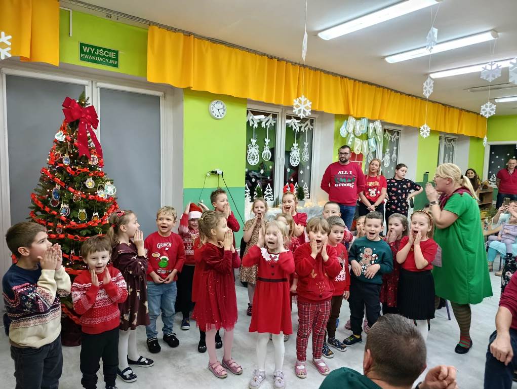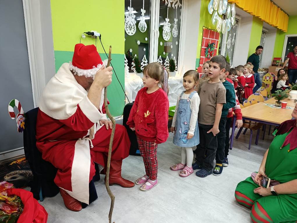 Gdy choinka była już pięknie udekorowana, do sali niespodziewanie przybył Gwiazdor, dla którego dzieci przygotowały krótki występ.