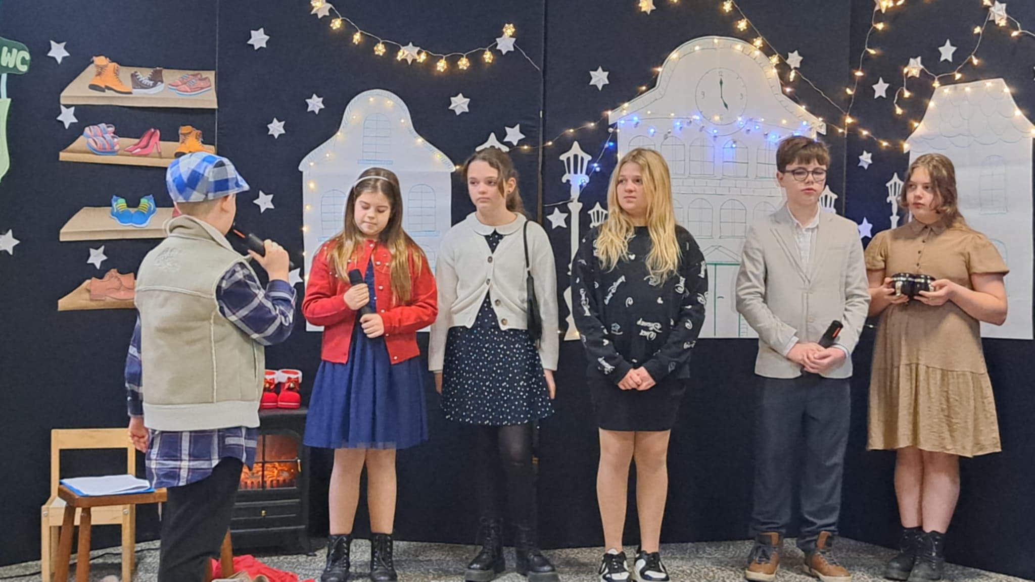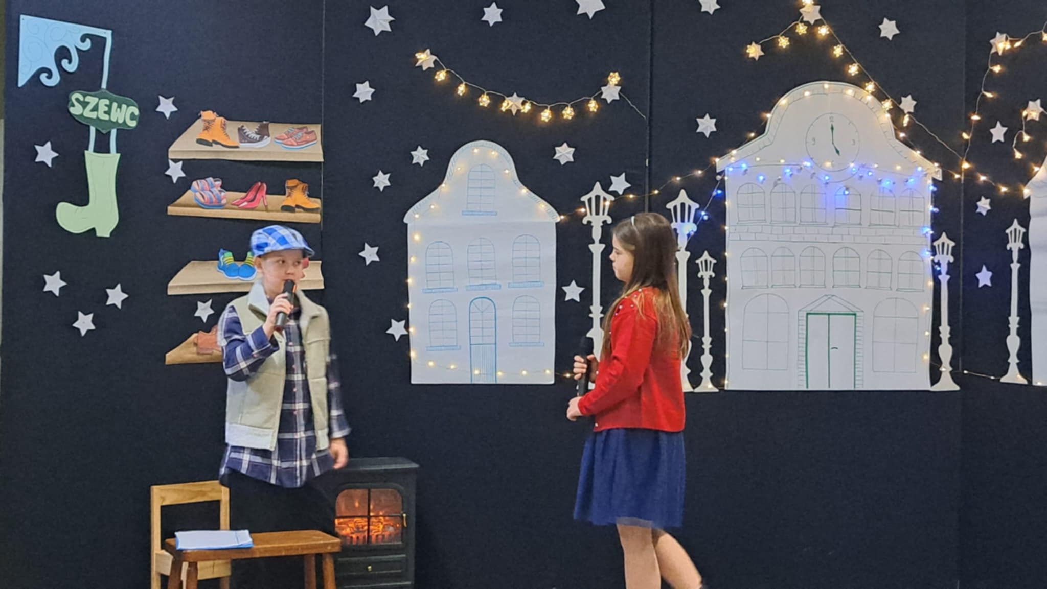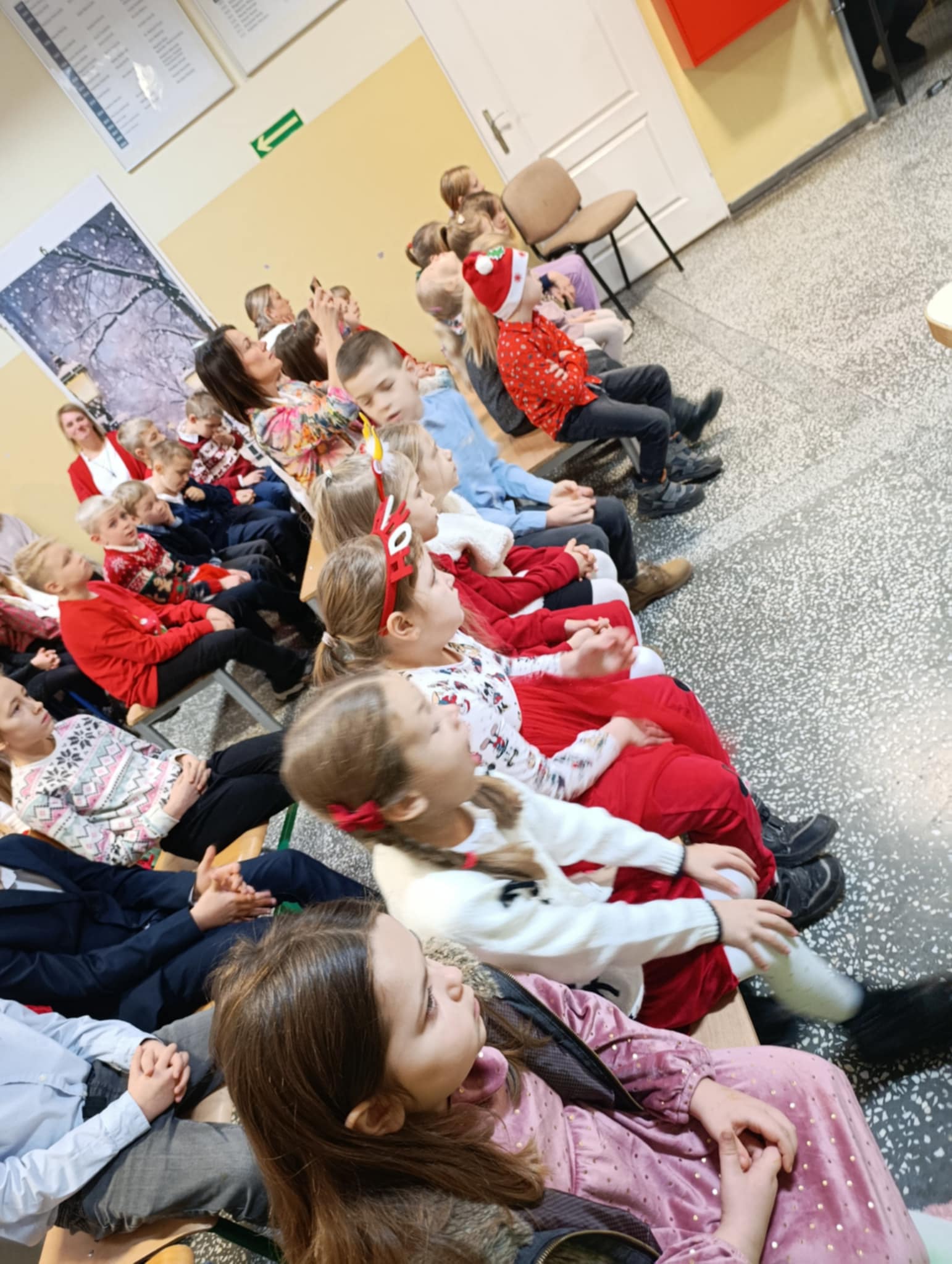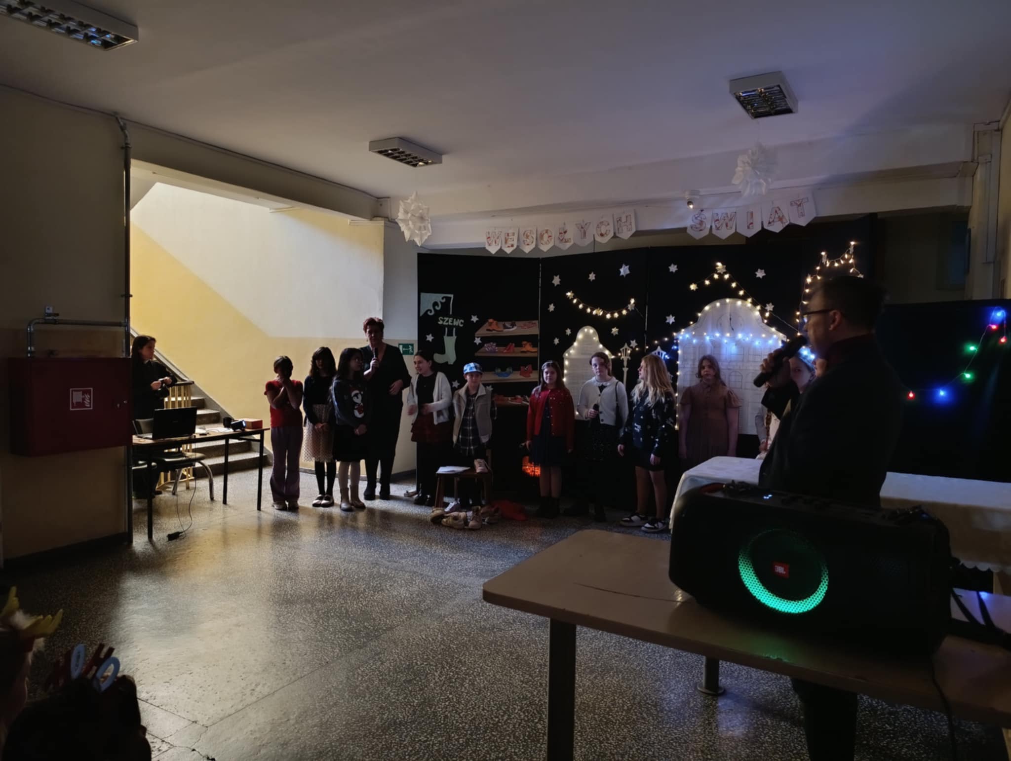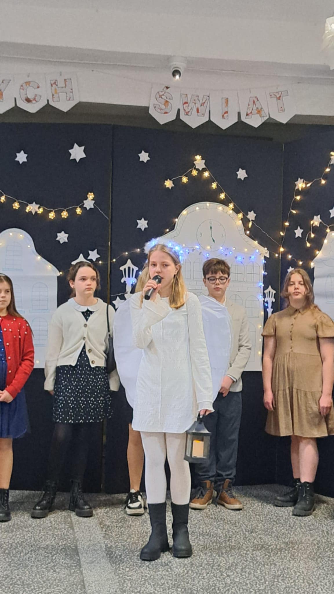 W piątek 19 grudnia wszyscy odświętnie ubrani zebraliśmy się na dolnym korytarzy, by obejrzeć spektakl teatralny wprowadzający w atmosferę Świąt Bożego Narodzenia. Aktorami byli uczniowie kl. V, a reżyserem wychowawczyni Pani Hanna Bartecka we współpracy z Panią Kasią Karczyńską. Przedstawienie było bardzo ciekawe i efektowne, wszystkim przypadło do gustu. Później wręczyliśmy nagrody i dyplomy z różnych konkursów. Były też oczywiście wspólne kolędy i życzenia świąteczne. Po zakończeniu tej części rozeszliśmy się do sal lekcyjnych, by wspólnie z wychowawcami świętować Boże Narodzenie. Wesołych Świąt!