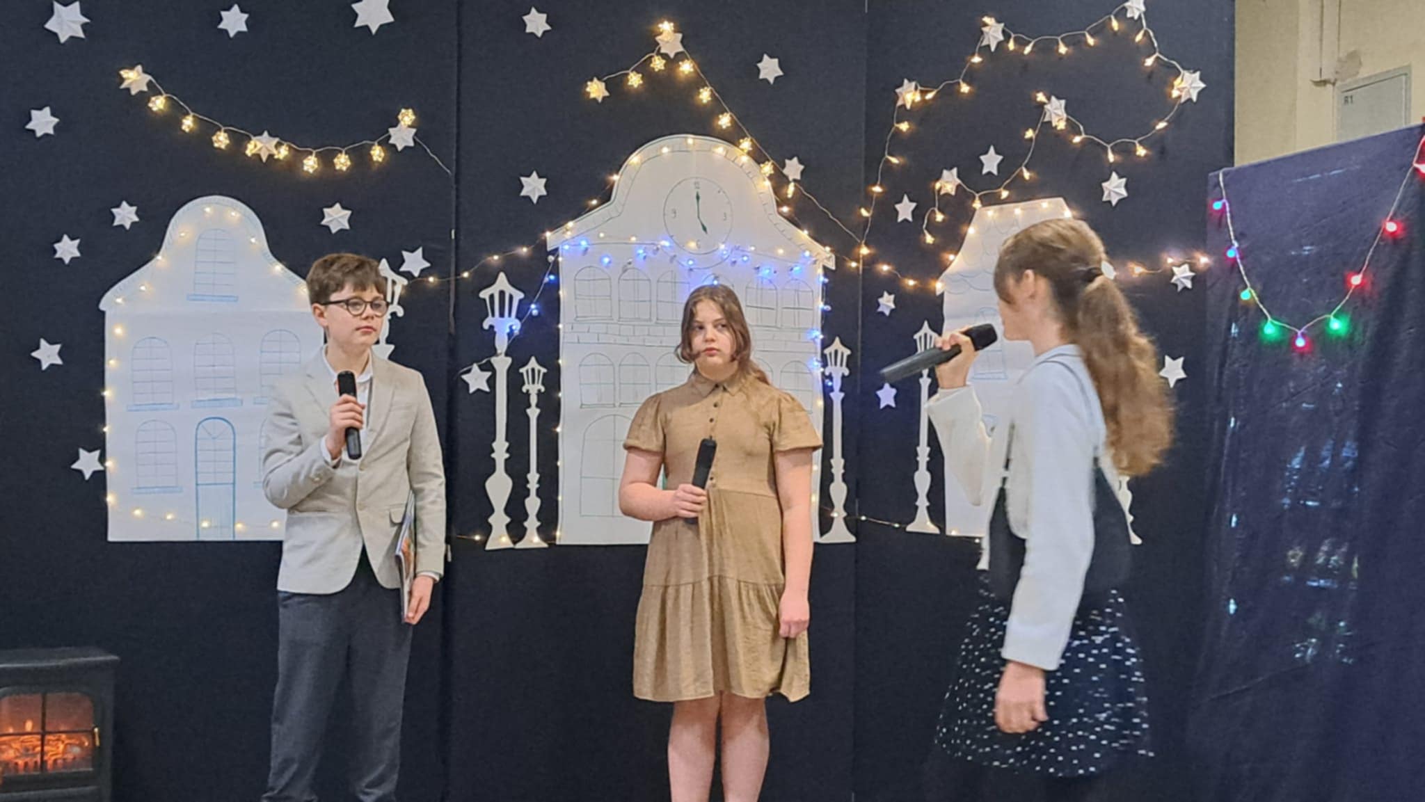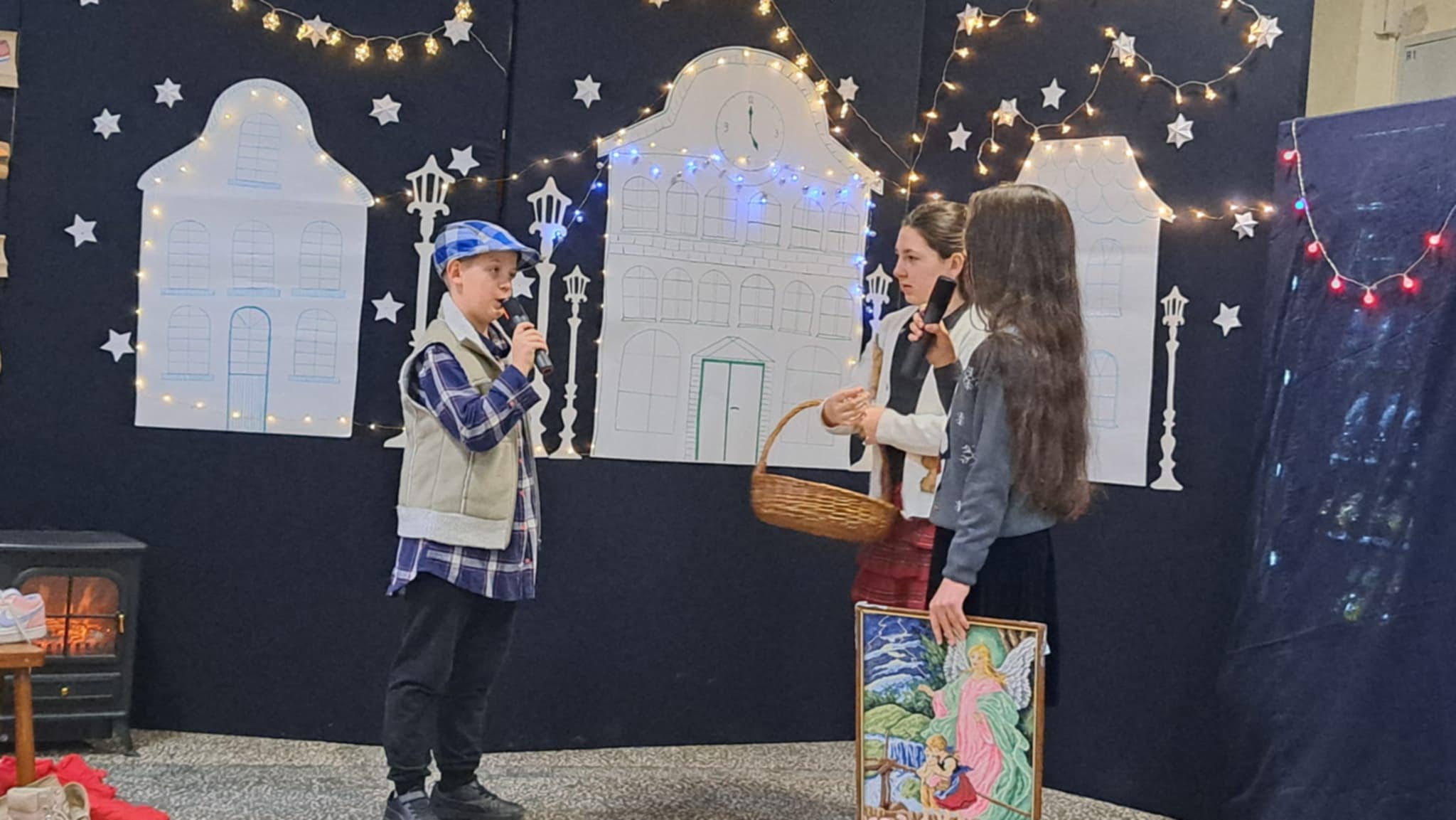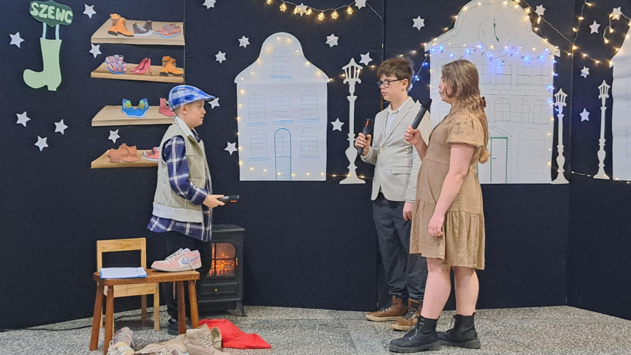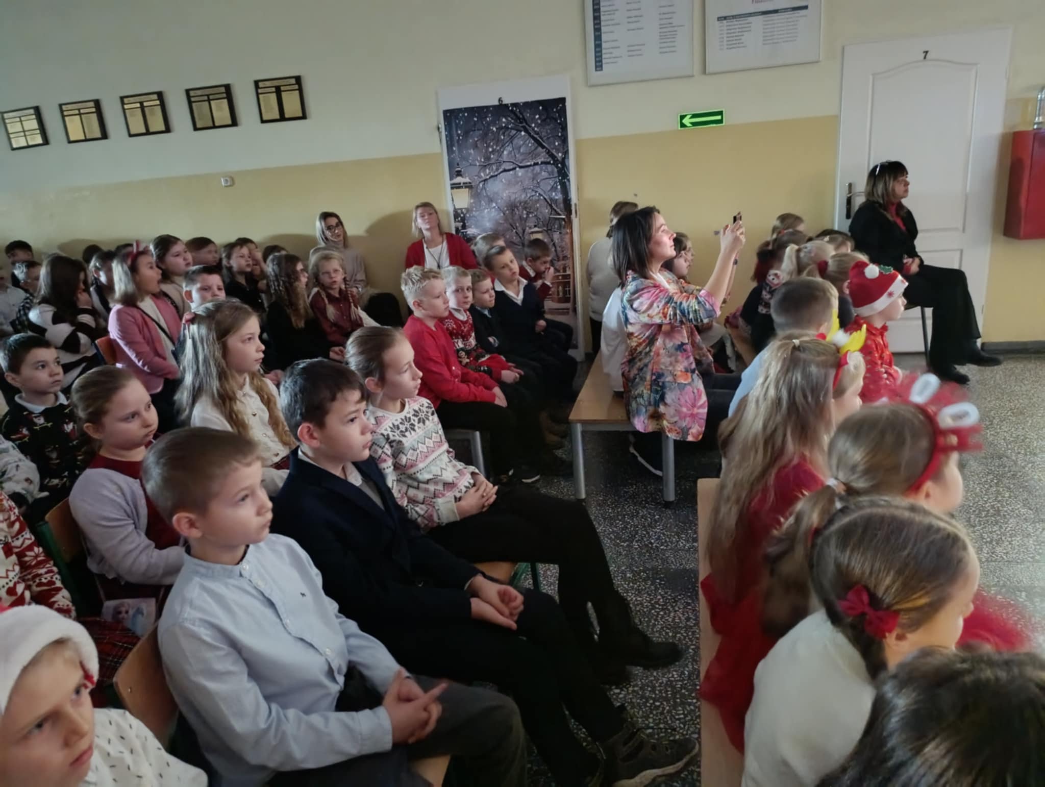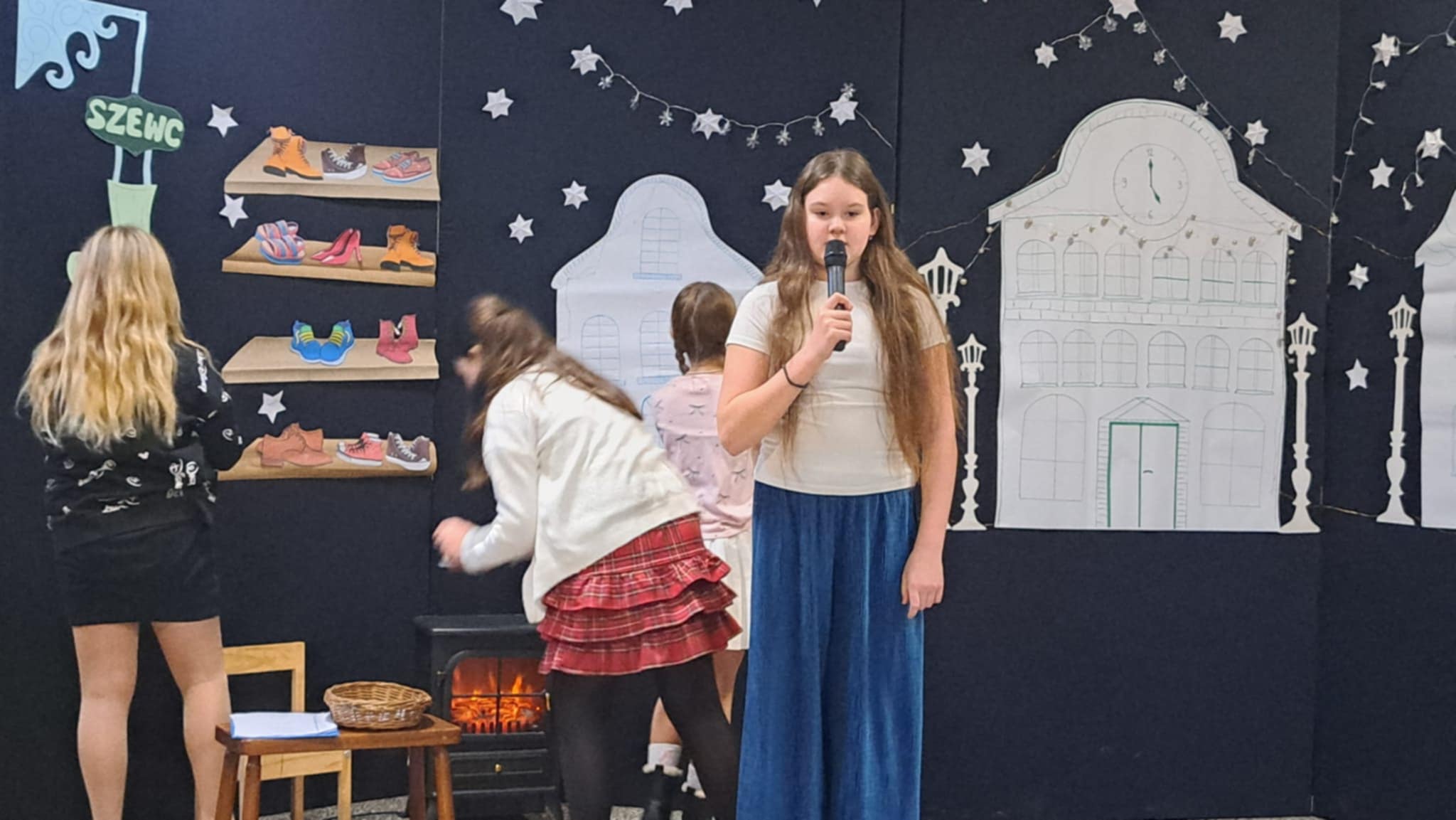 W piątek 19 grudnia wszyscy odświętnie ubrani zebraliśmy się na dolnym korytarzy, by obejrzeć spektakl teatralny wprowadzający w atmosferę Świąt Bożego Narodzenia. Aktorami byli uczniowie kl. V, a reżyserem wychowawczyni Pani Hanna Bartecka we współpracy z Panią Kasią Karczyńską. Przedstawienie było bardzo ciekawe i efektowne, wszystkim przypadło do gustu. Później wręczyliśmy nagrody i dyplomy z różnych konkursów. Były też oczywiście wspólne kolędy i życzenia świąteczne. Po zakończeniu tej części rozeszliśmy się do sal lekcyjnych, by wspólnie z wychowawcami świętować Boże Narodzenie. Wesołych Świąt!