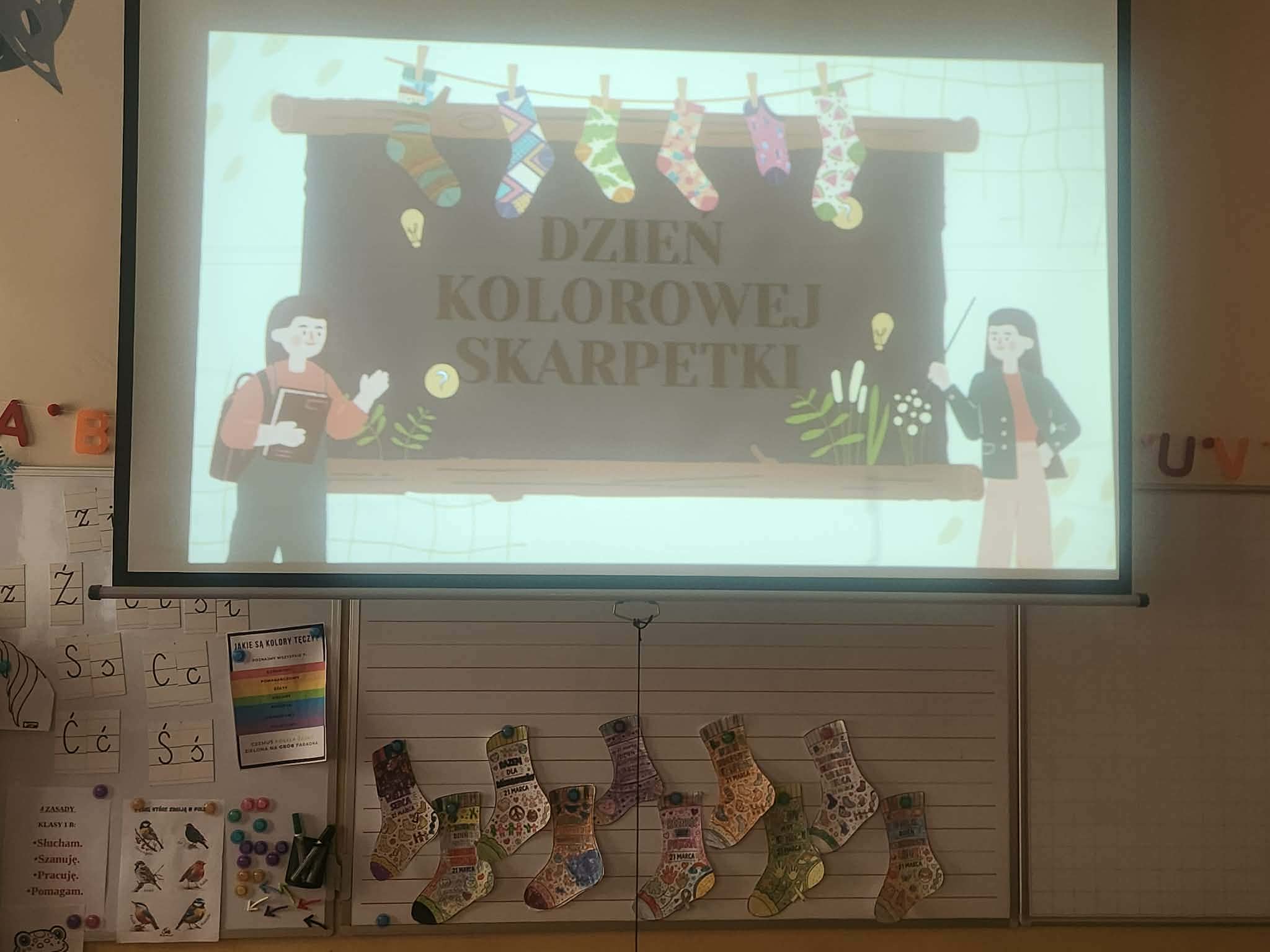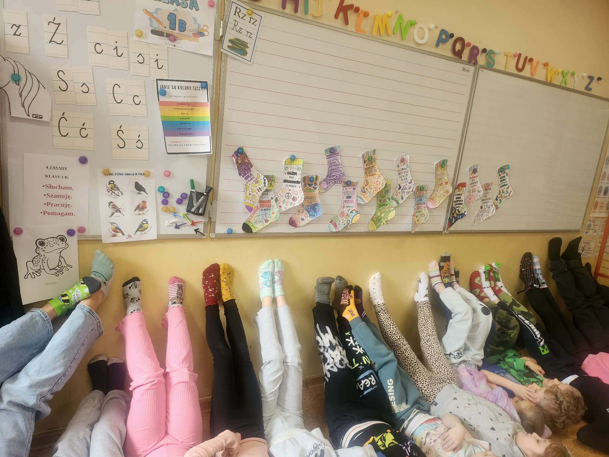 Klasa I B uczciła dziś Święto Kolorowej Skarpetki. Uczniowie obejrzeli film o dzieciach z Zespołem Downa. Rozmawialiśmy o różnorodności i tolerancji.