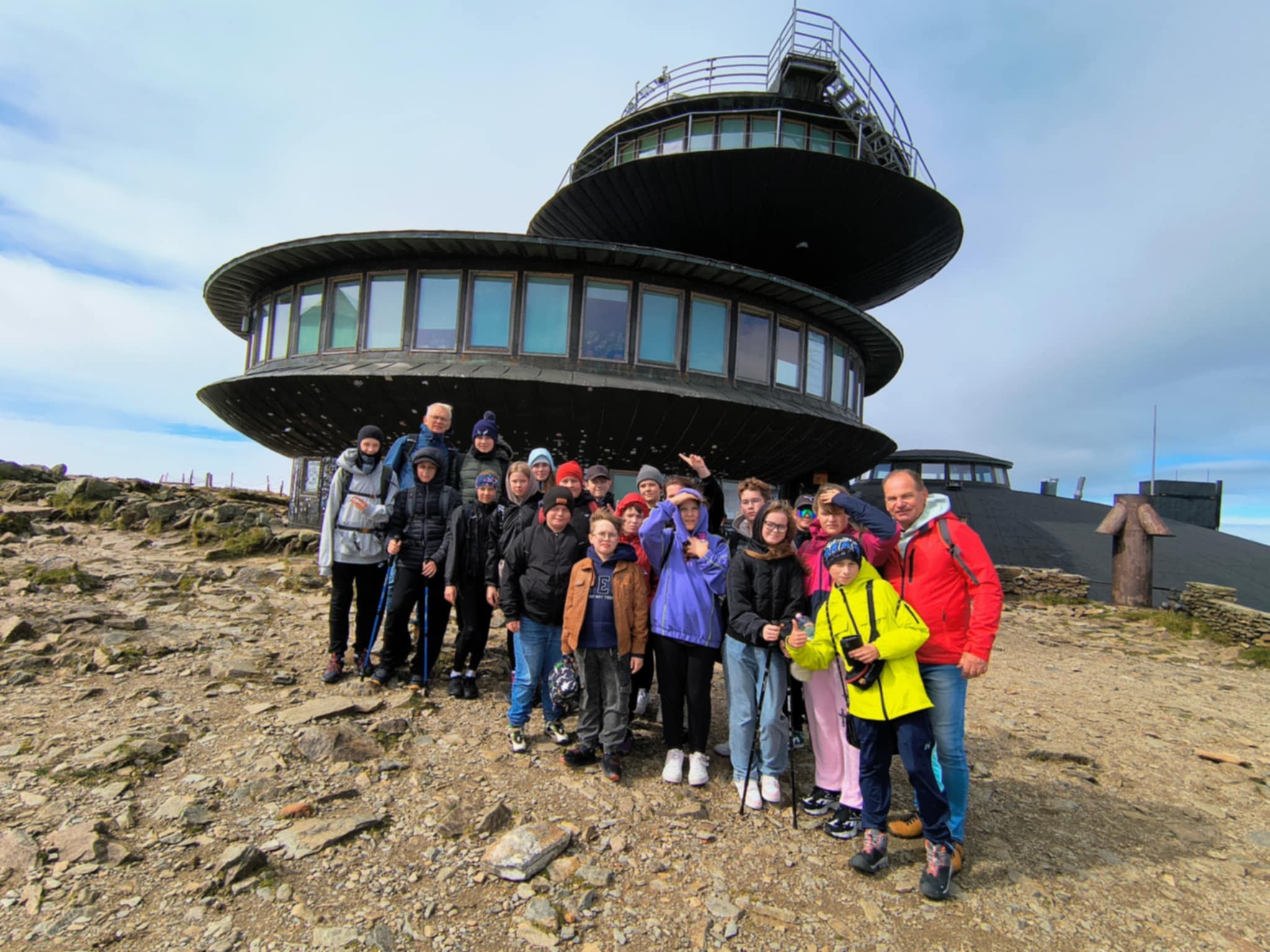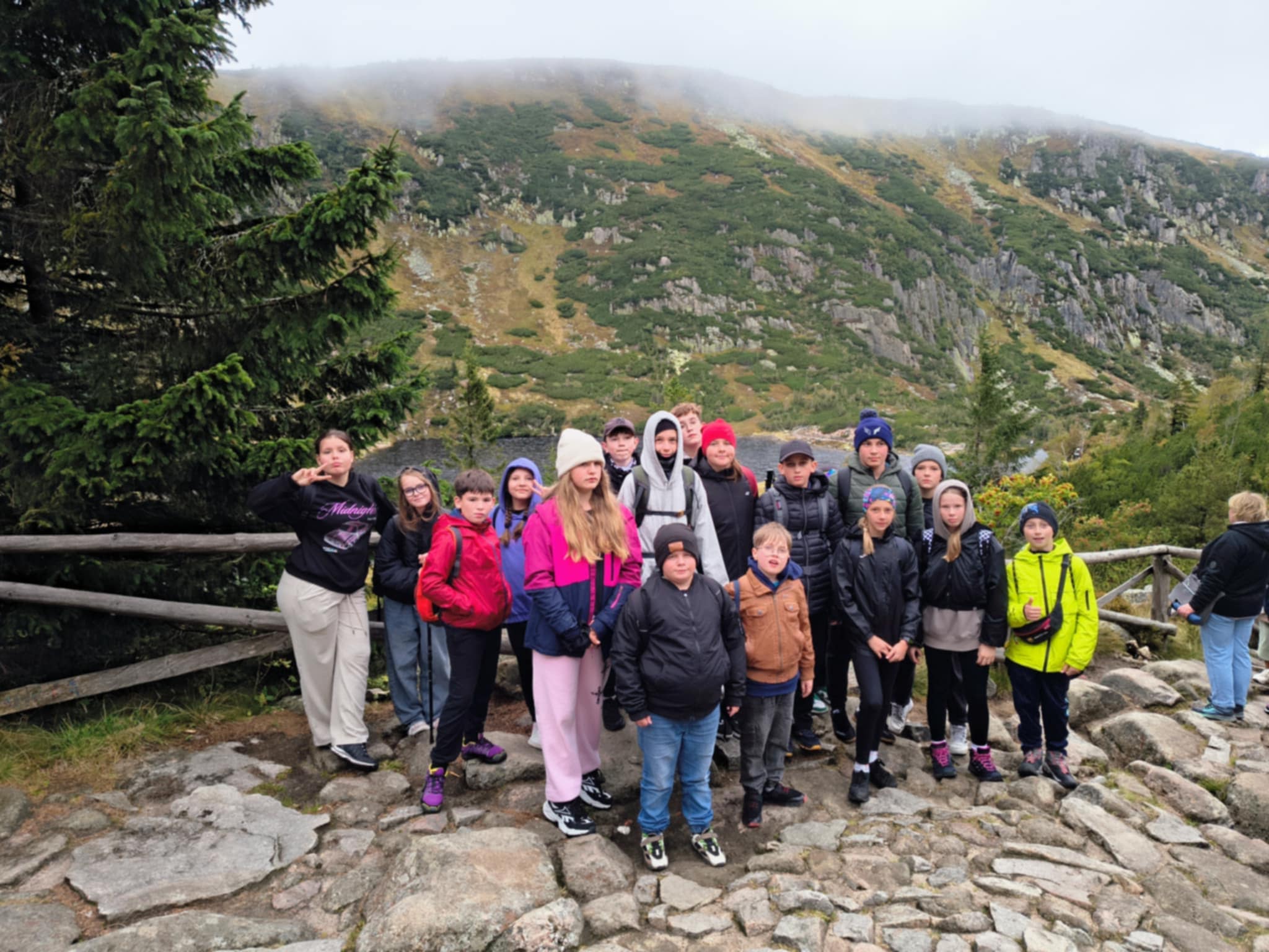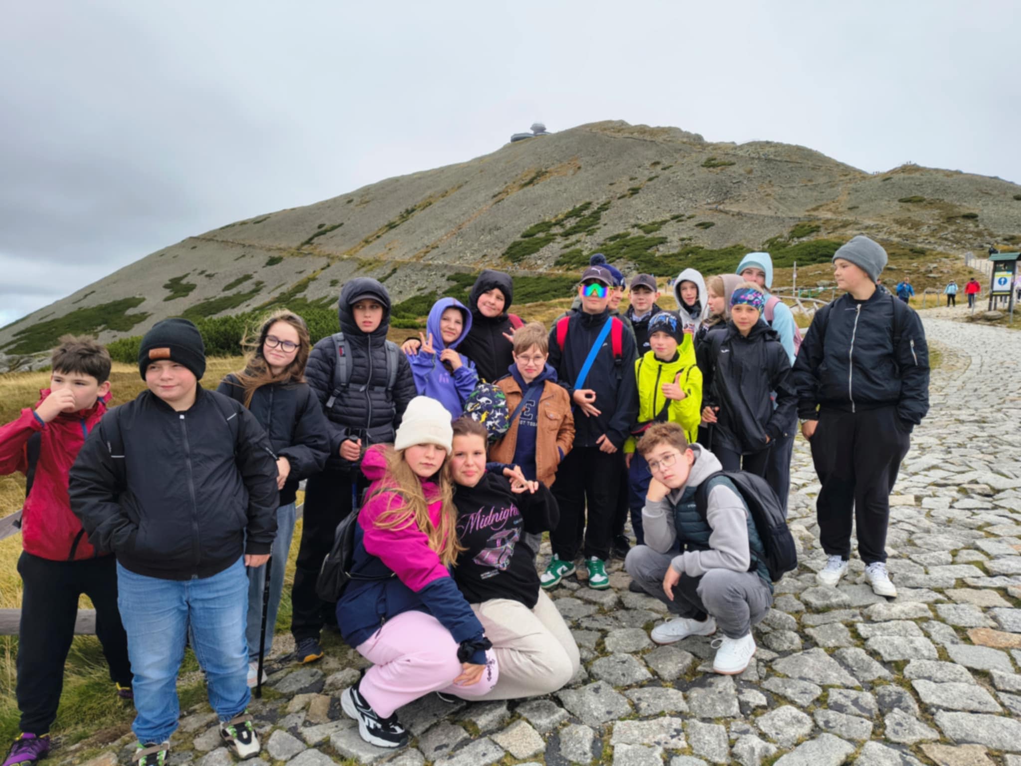 W dn. 18 - 19 września uczniowie kl. VI wraz z wychowawcą Panem Sławoszem Kolańczykiem oraz Wf-istą Panem Krzysztofem Czaplickim wybrali się w...Karkonosze. Wyjazd, choć tylko dwudniowy, obfitował w sporo atrakcji. Wjazd na Kopę był łatwy, ale już wędrówka na Śnieżkę i silny wiatr do najłatwiejszych nie należały. Widoki jednak zrekompensowały wszystko, a nasze głowy mieliśmy w...chmurach. Zobaczyliśmy schroniska: Strzechę Akademicką i Samotnię. Podziwialiśmy piękny widok nad Małym Stawem. Nie mogło zabraknąć w programie zwiedzania Świątyni Wang czyli...trochę Norwegii w Polsce. Wieczornem odbyliśmy spacer do zapory na Łomnicy.