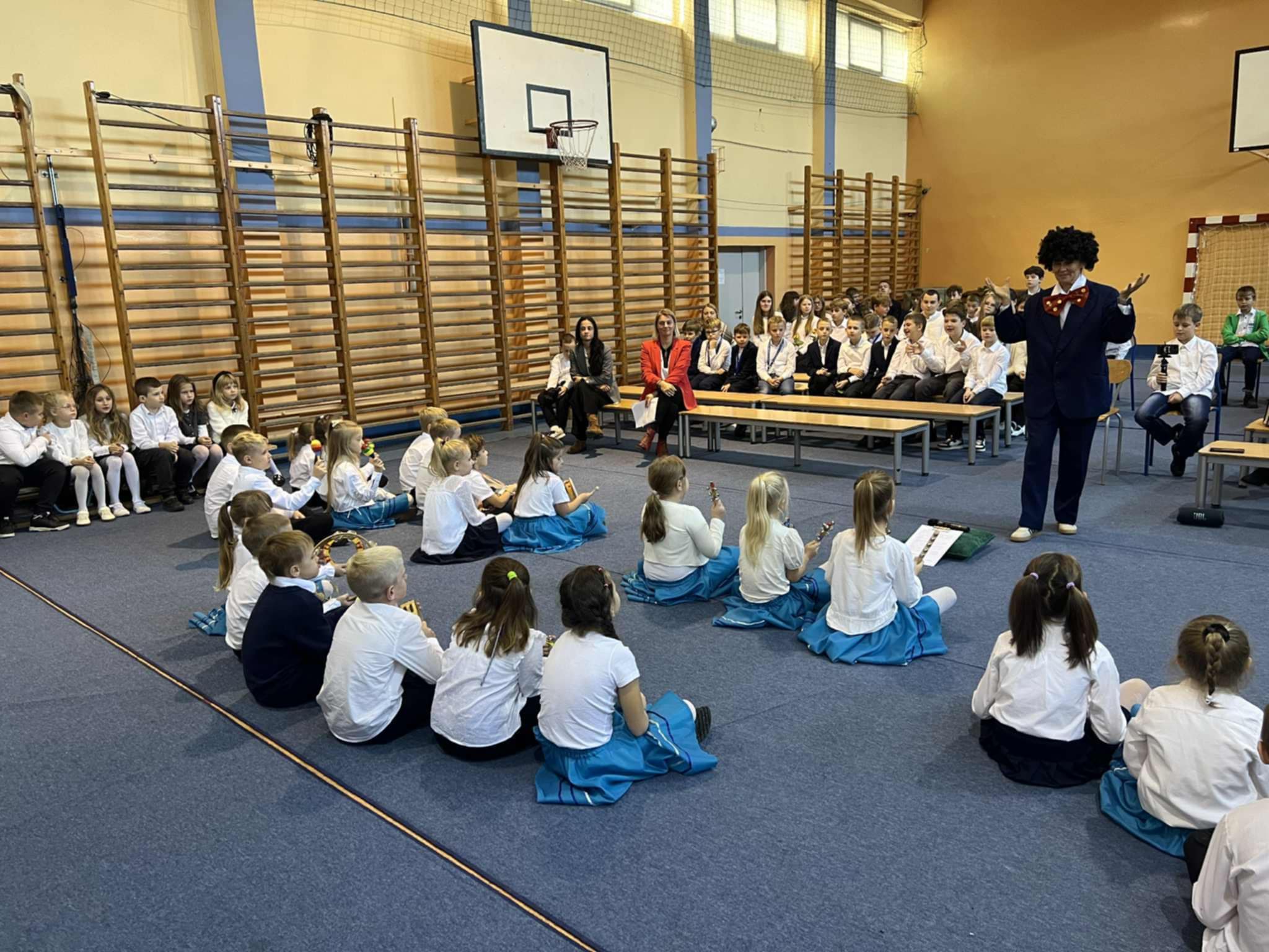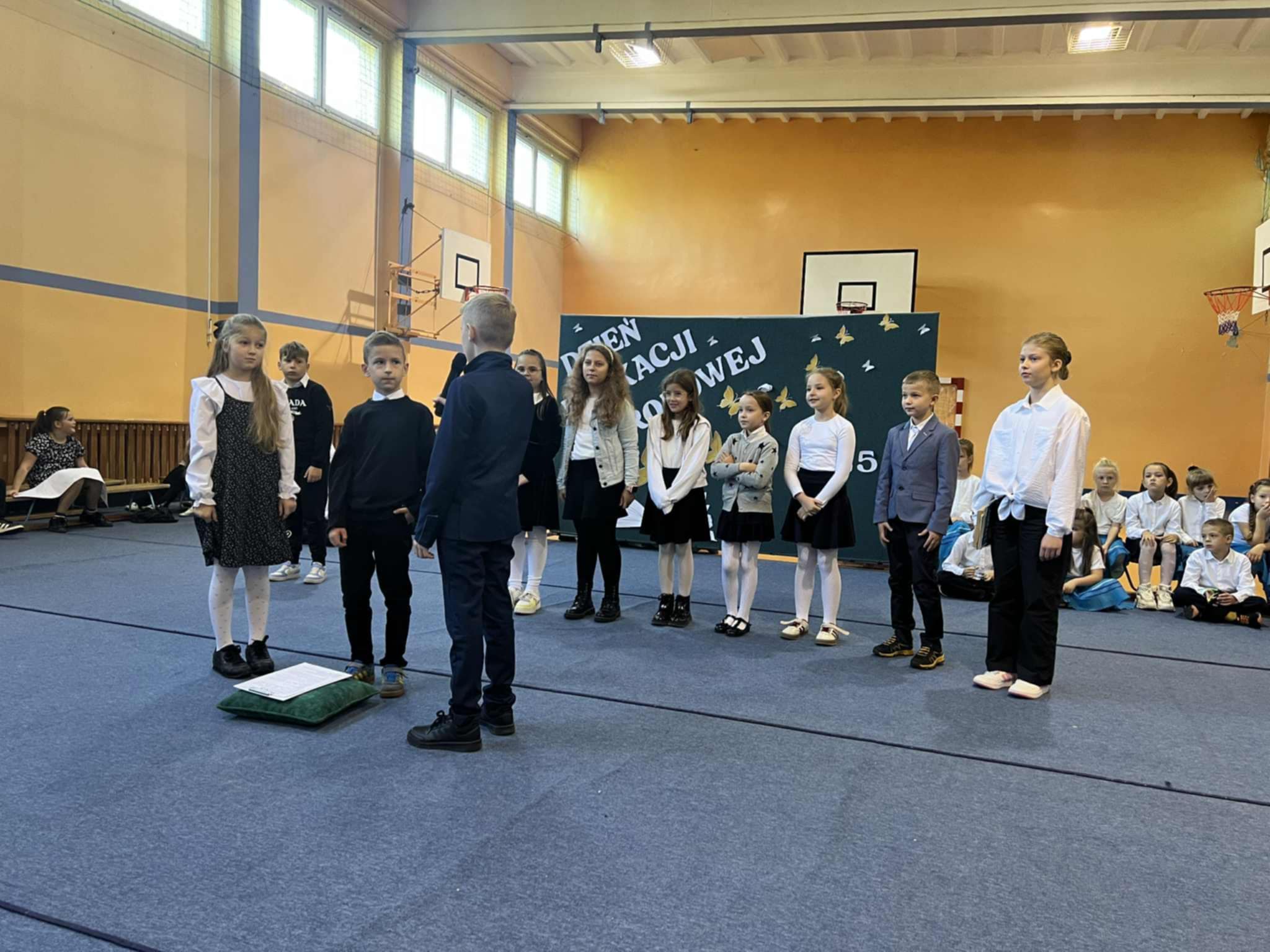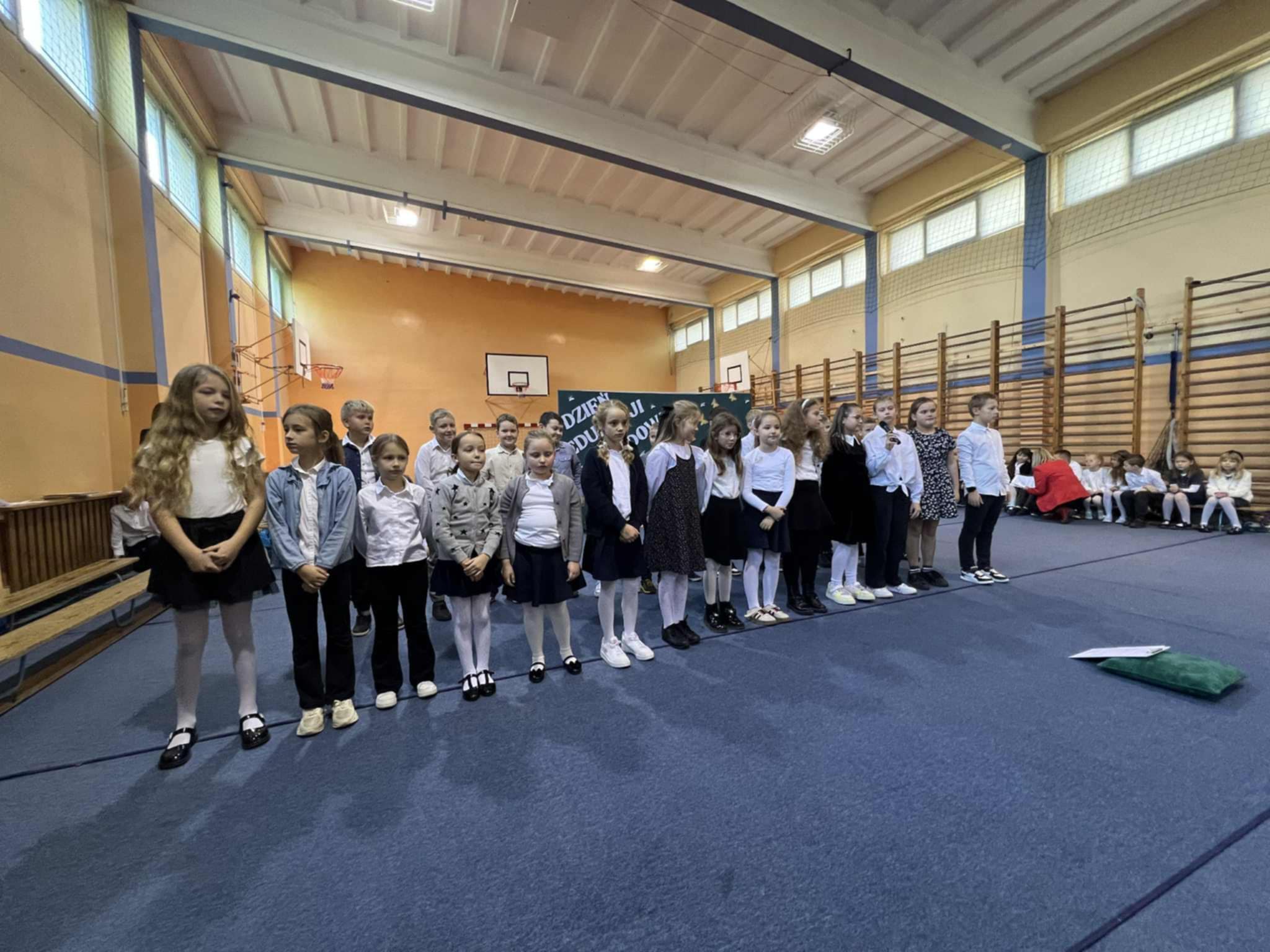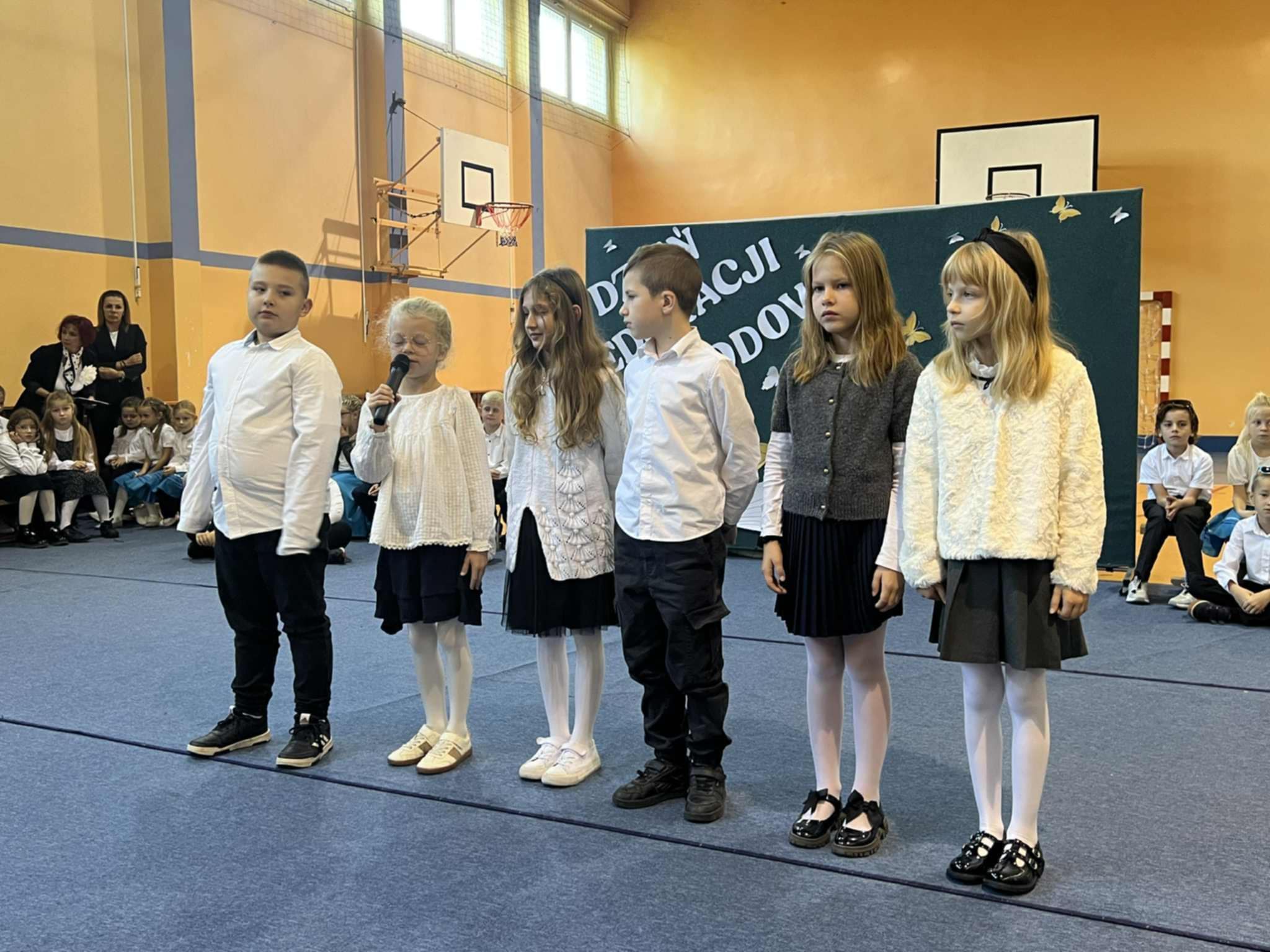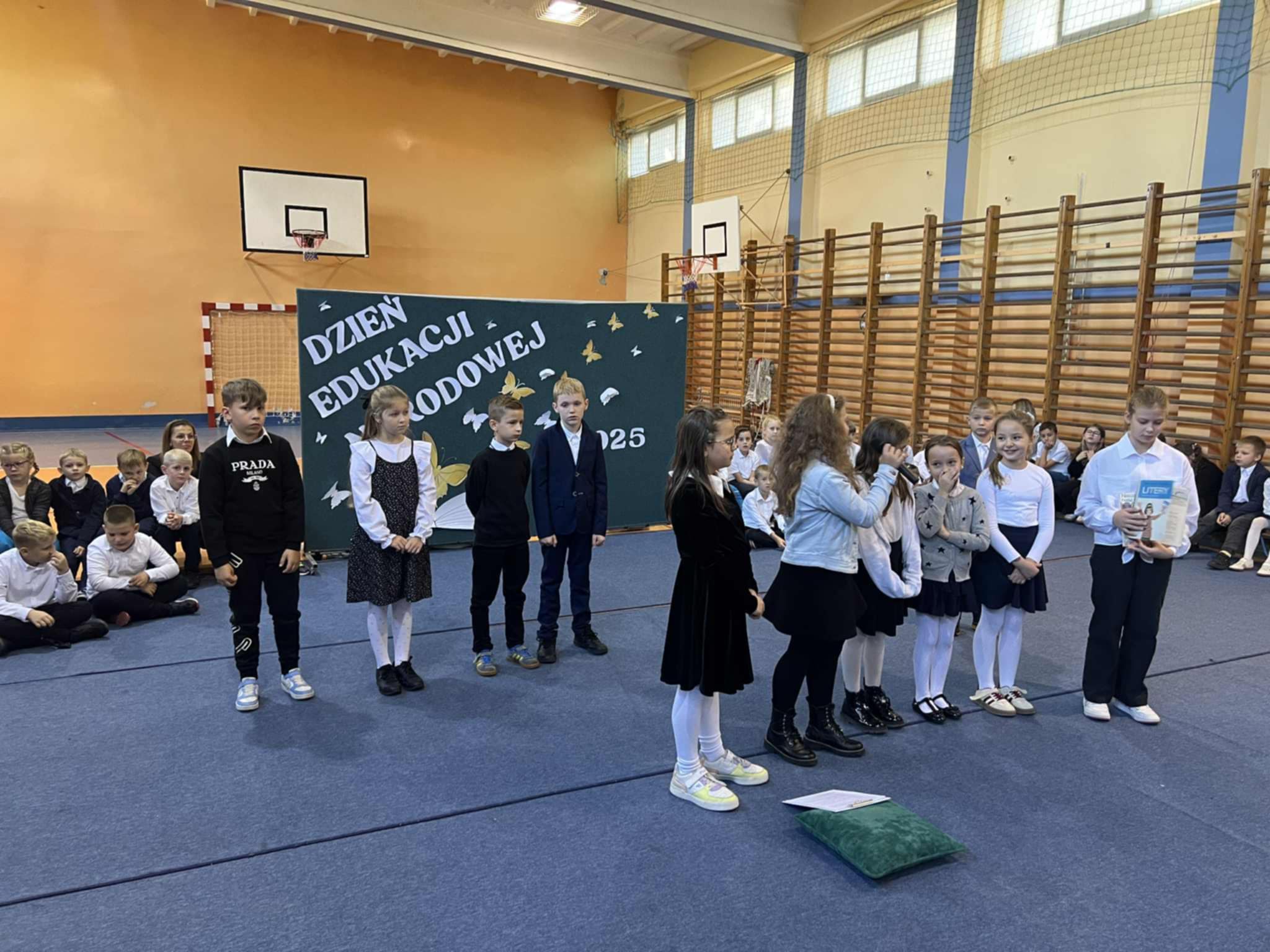 W poniedziałkowy poranek uczniowie z kl. I - III zaprosili wszystkich nauczycieli i pracowników szkoły na uroczystość z okazji Dnia Edukacji Narodowej. Obejrzeliśmy piękny, humorystyczny montaż, w którym były popisy taneczne, wokalne i aktorskie. Ba, była nawet orkiestra z prawdziwą dyrygentką!