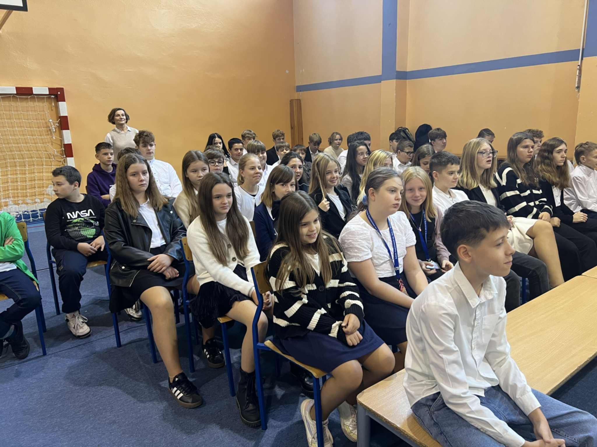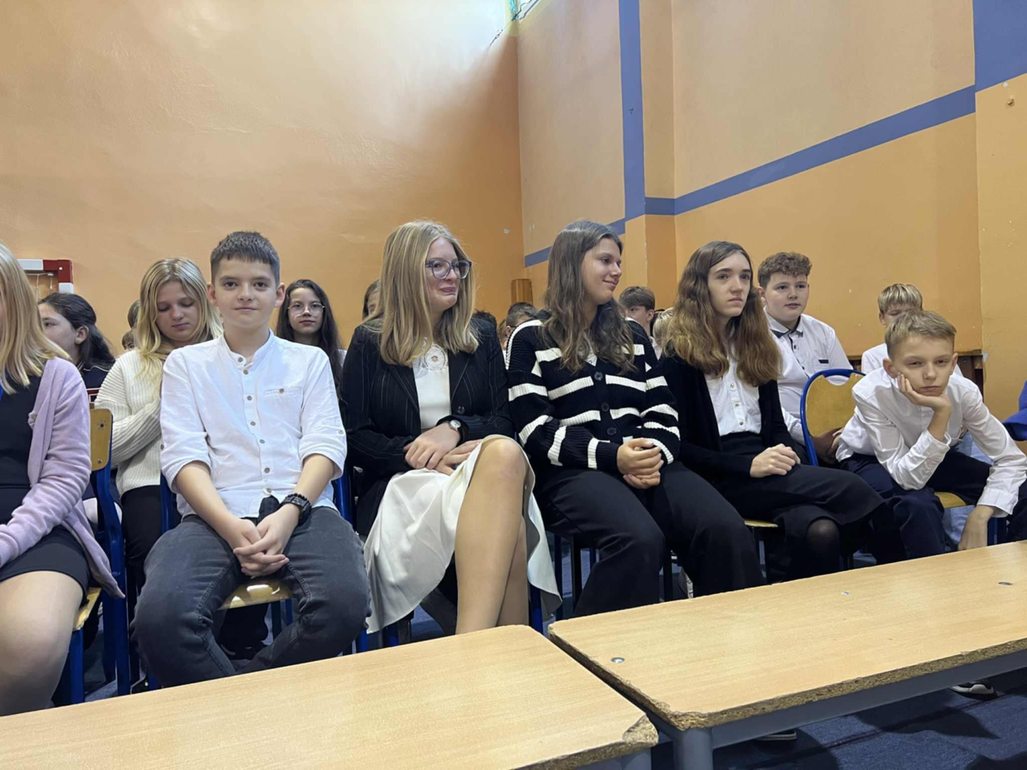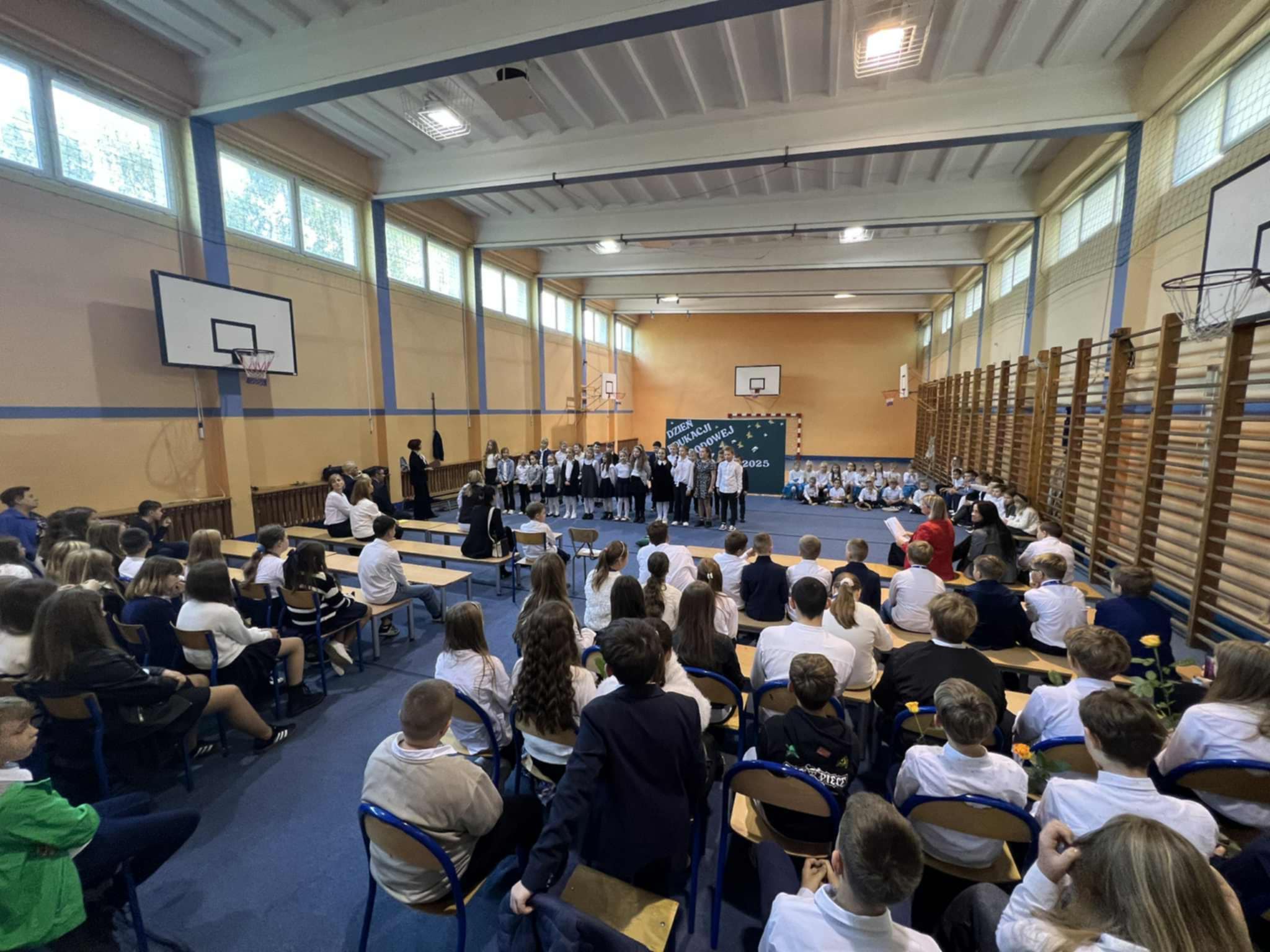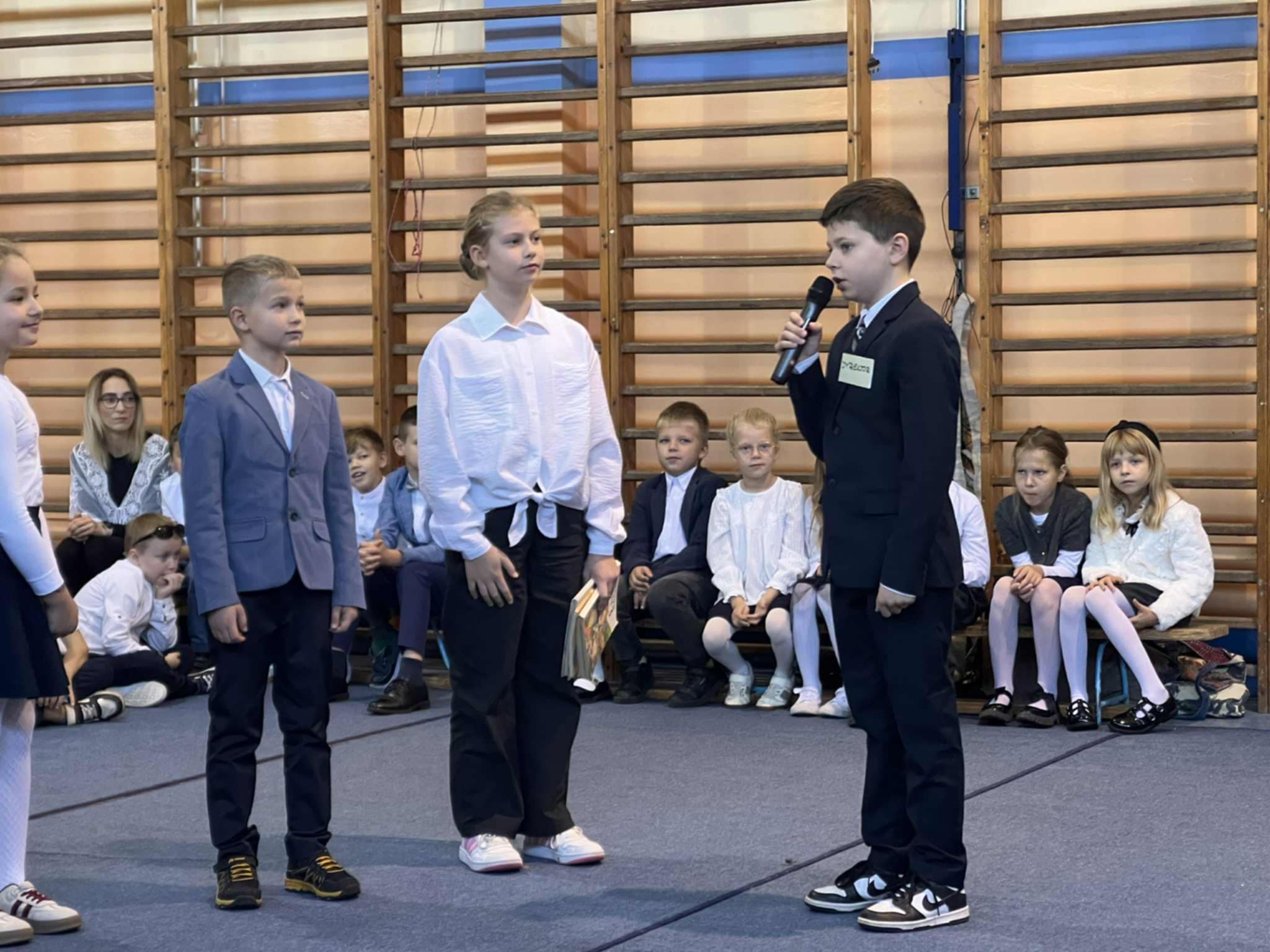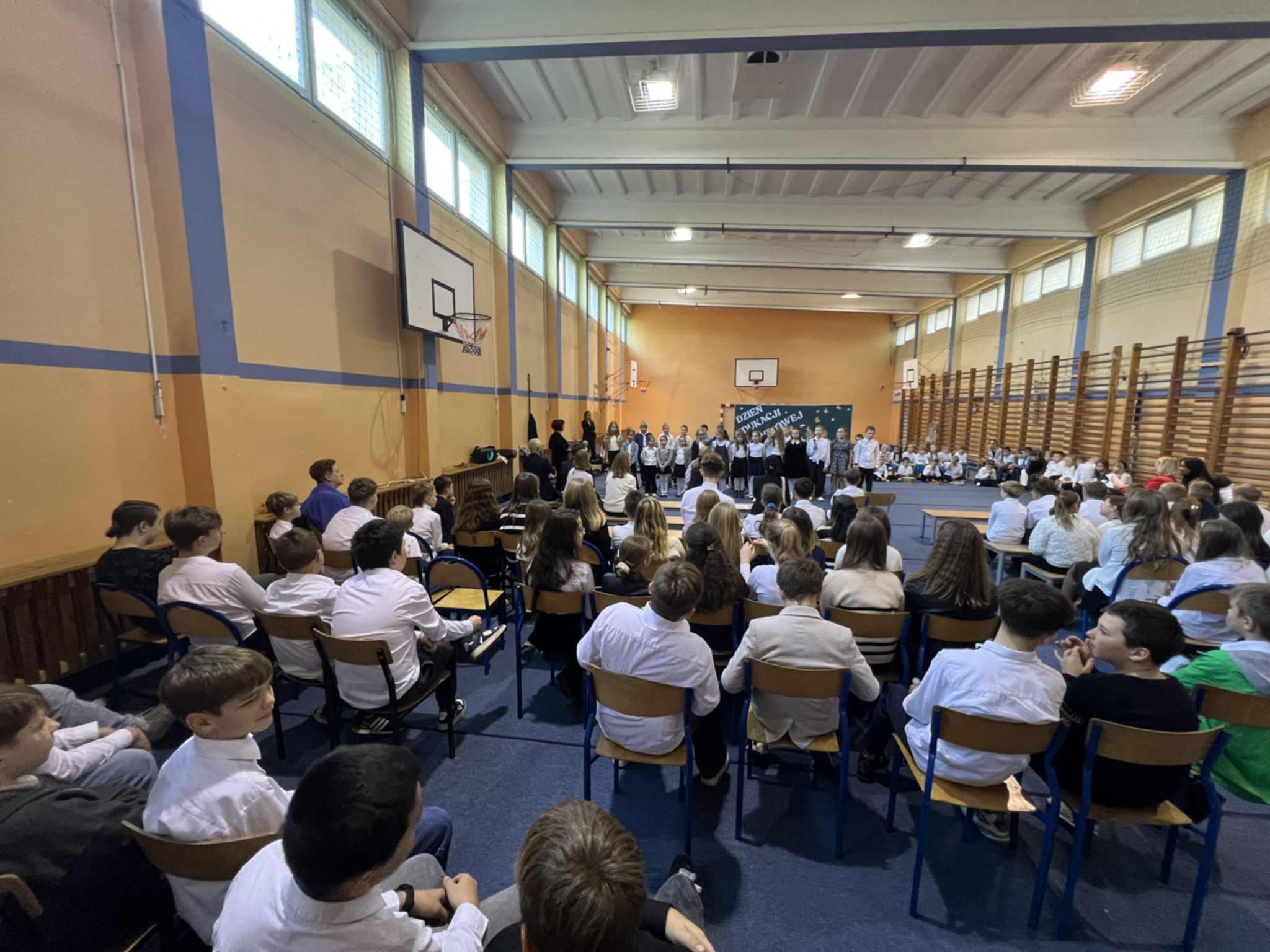 W poniedziałkowy poranek uczniowie z kl. I - III zaprosili wszystkich nauczycieli i pracowników szkoły na uroczystość z okazji Dnia Edukacji Narodowej. Obejrzeliśmy piękny, humorystyczny montaż, w którym były popisy taneczne, wokalne i aktorskie. Ba, była nawet orkiestra z prawdziwą dyrygentką!