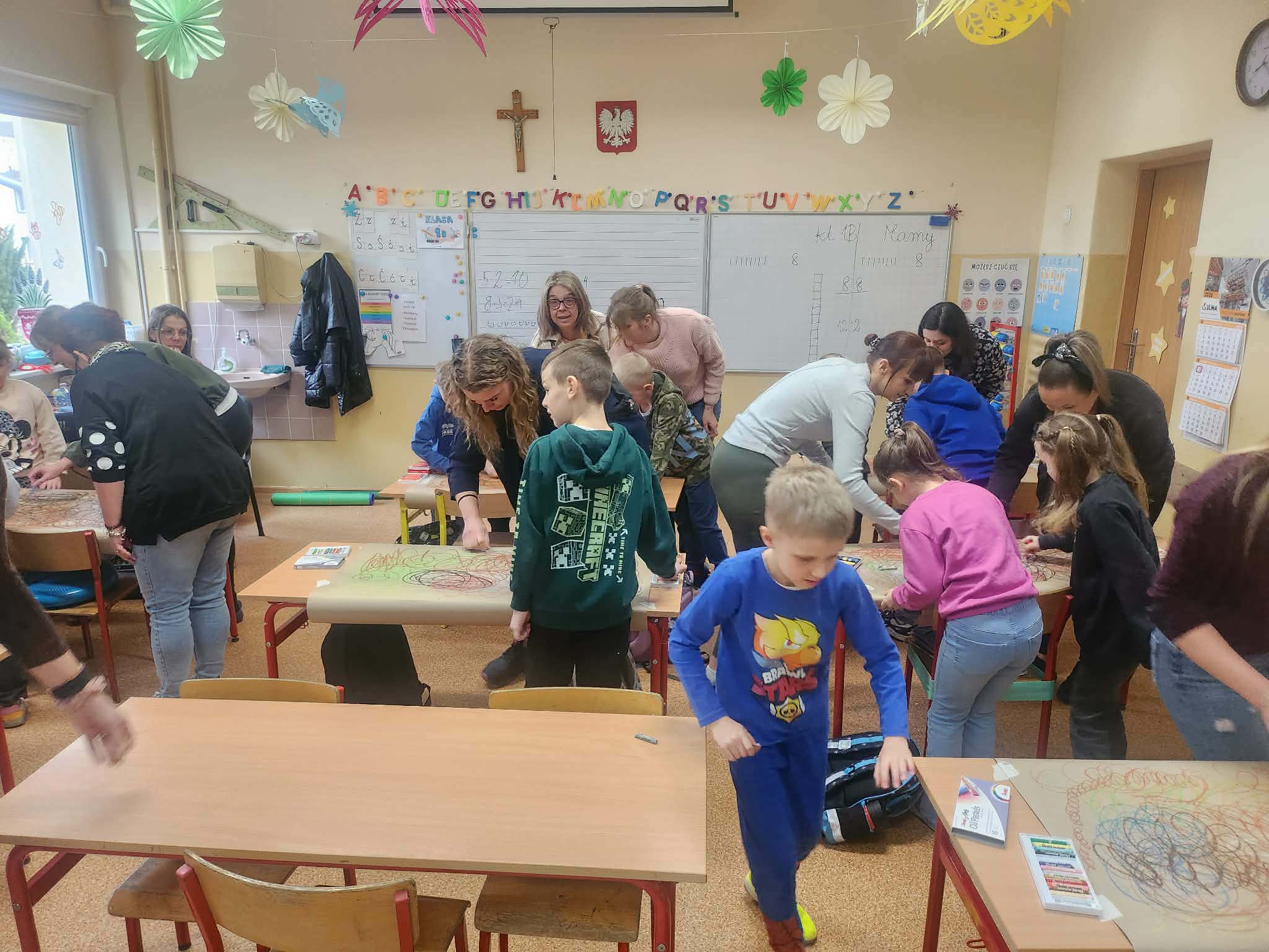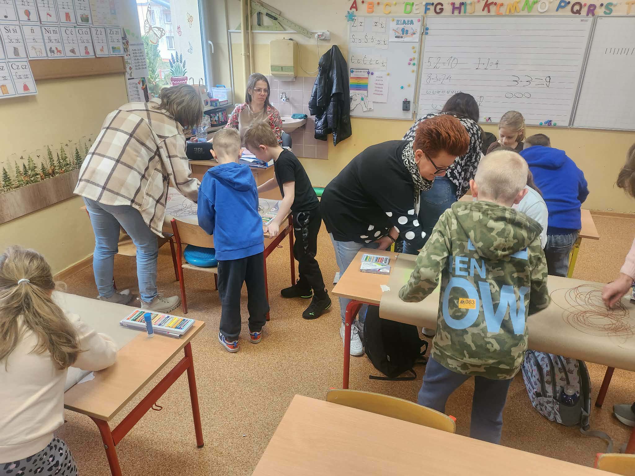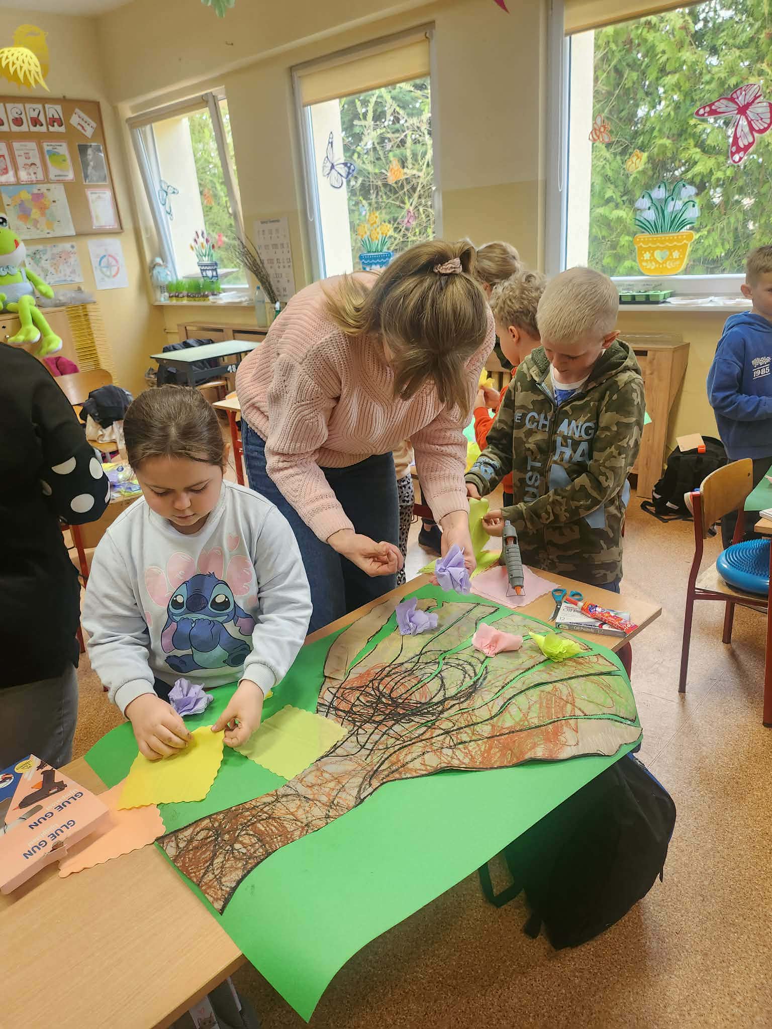 Podsumowaniem było stworzenie pięknej, zbiorowej pracy plastycznej.