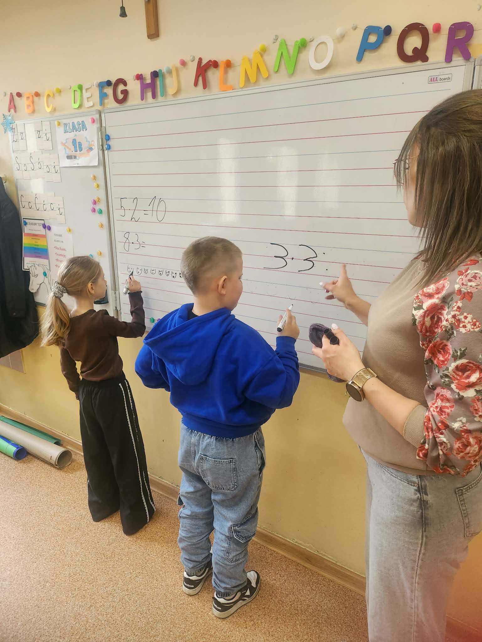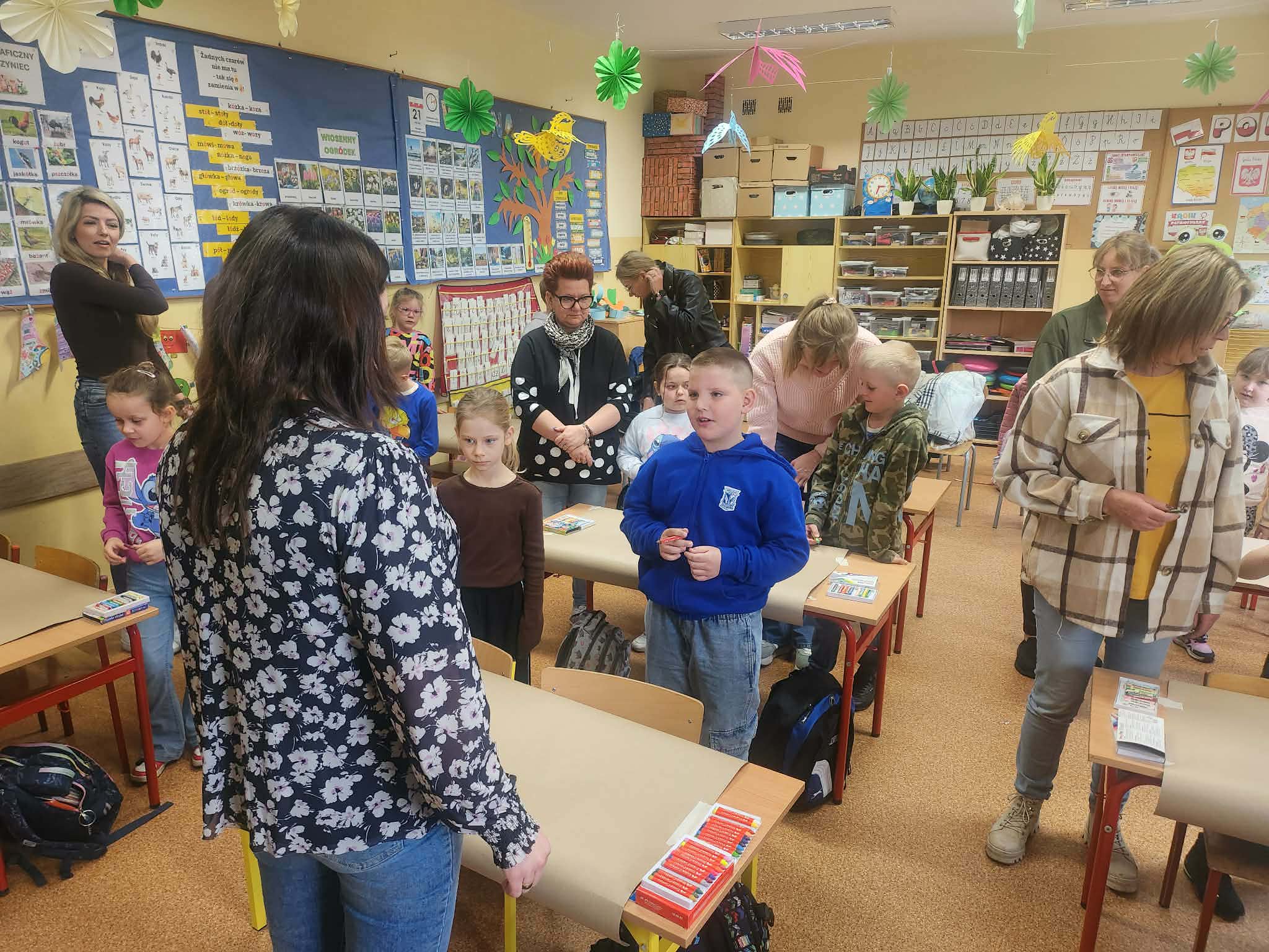Na dzisiejsze zajęcia otwarte uczniowie klasy I B zaprosili swoje mamy. Rywalizacja między uczniami i mamami dotyczyła czytania, ortografii i liczenia. Wygrali pierwszoklasiści!