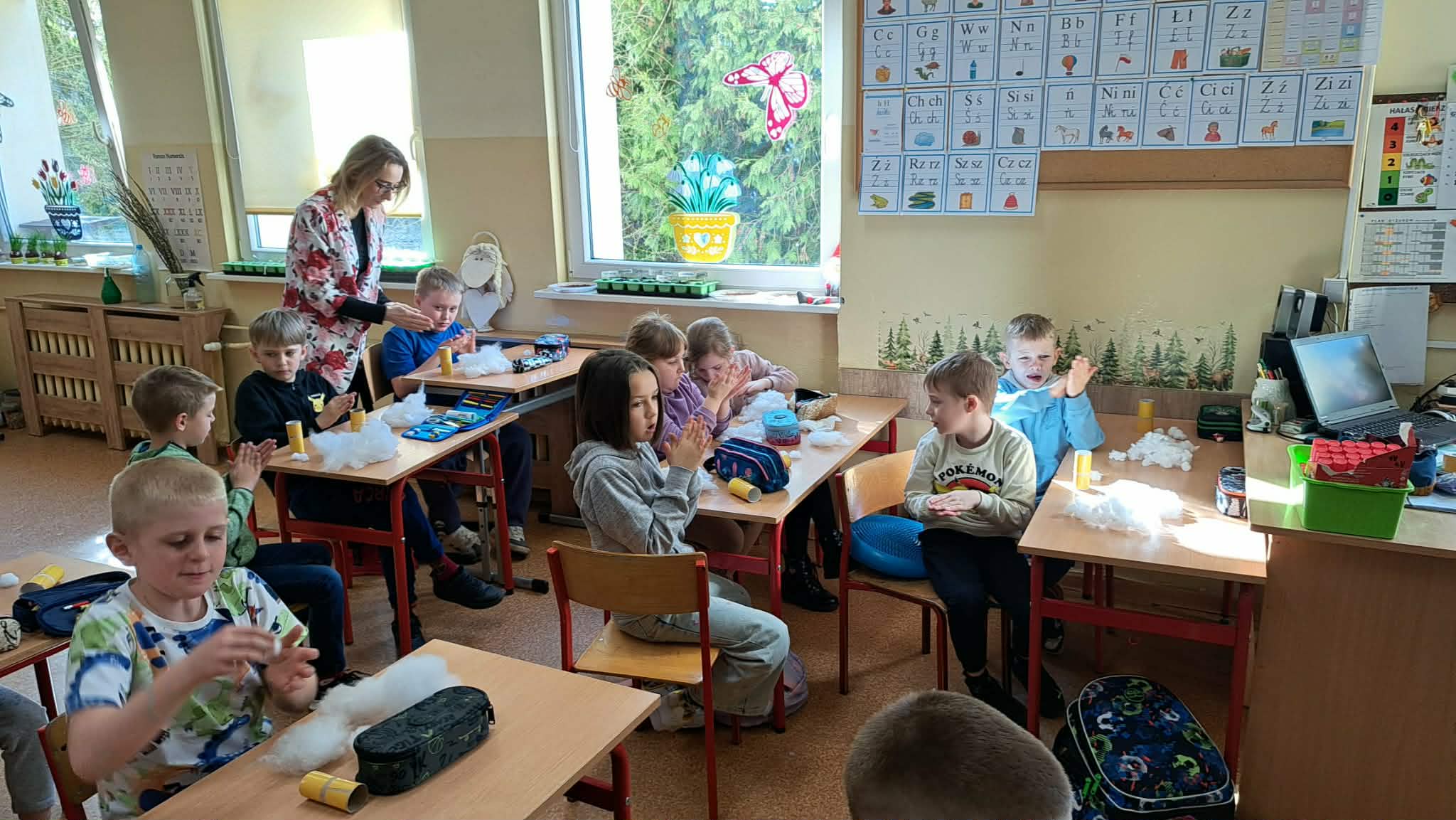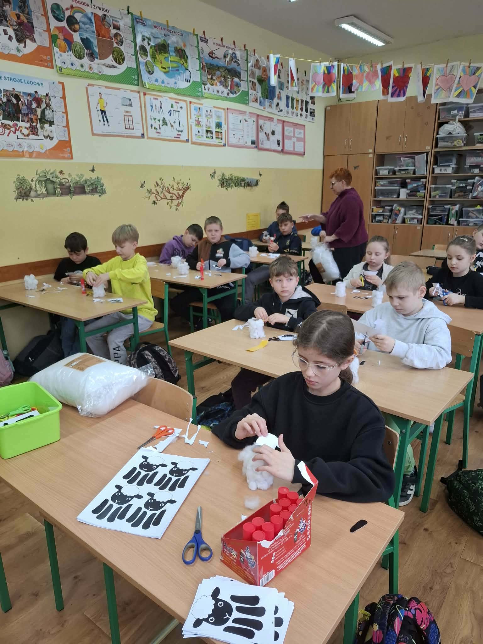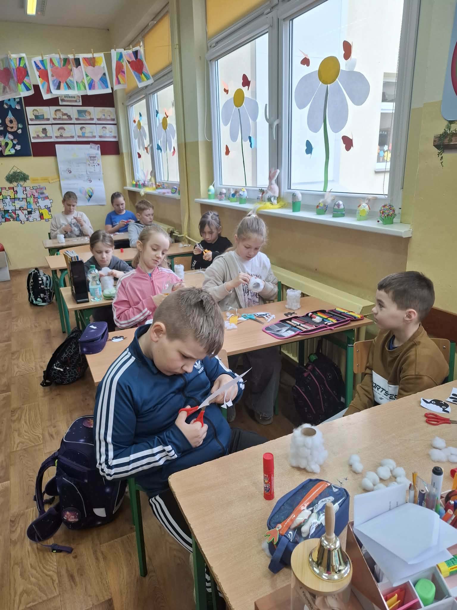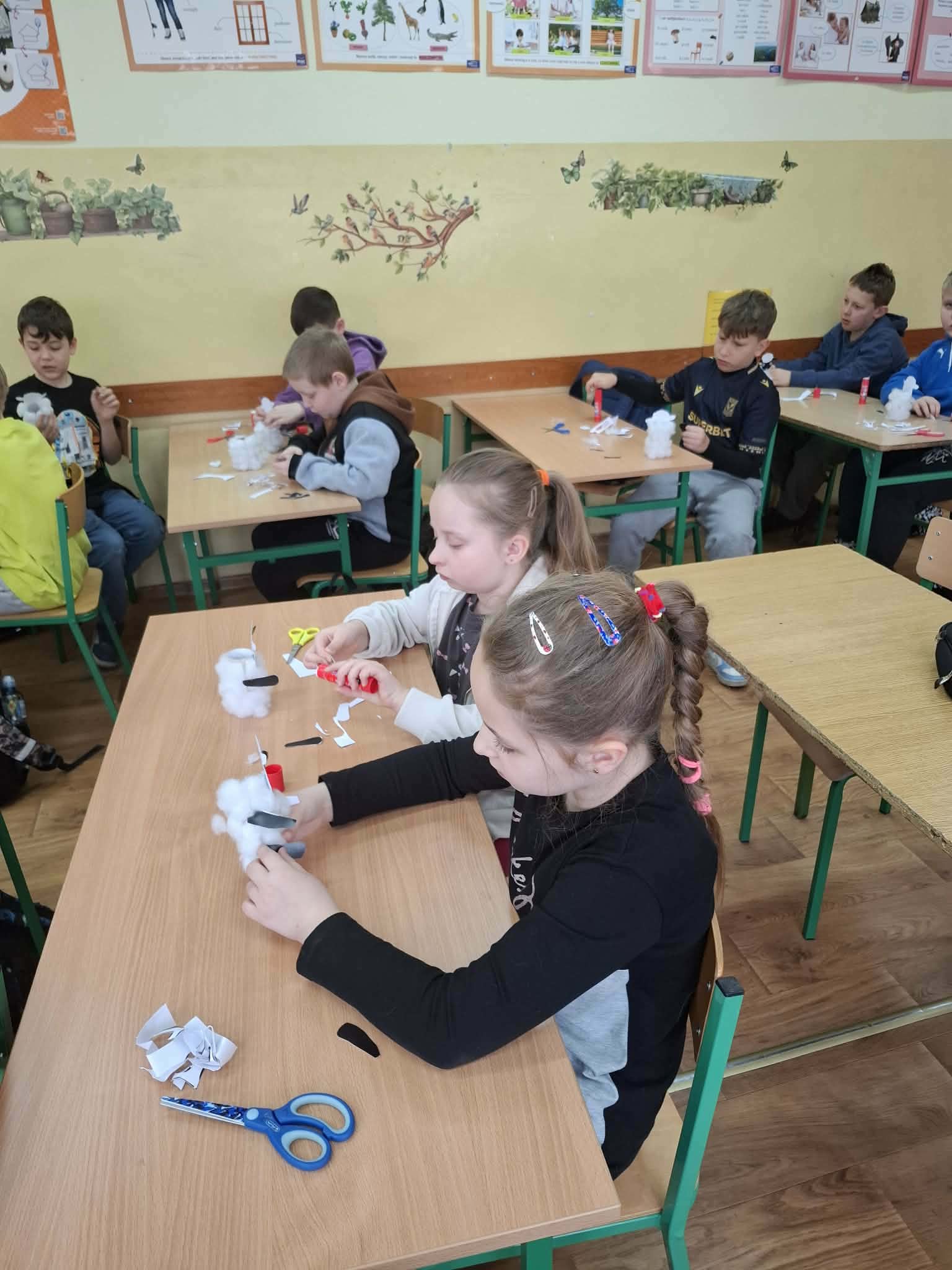 Wiosna oraz Wielkanoc to świetna okazja do zrobienia czegoś fajnego. Dlatego uczniowie kl. I - III gościli Panią Dorotę ze Śremskiego Ośrodka Kultury, z którą wspólnie wykonali baranka. W zrobienie tej pracy uczniowie włożyli dużo cierpliwości i serca, a prace okazały się być wspaniałą ozdobą na świąteczny stół. Dziękujemy!