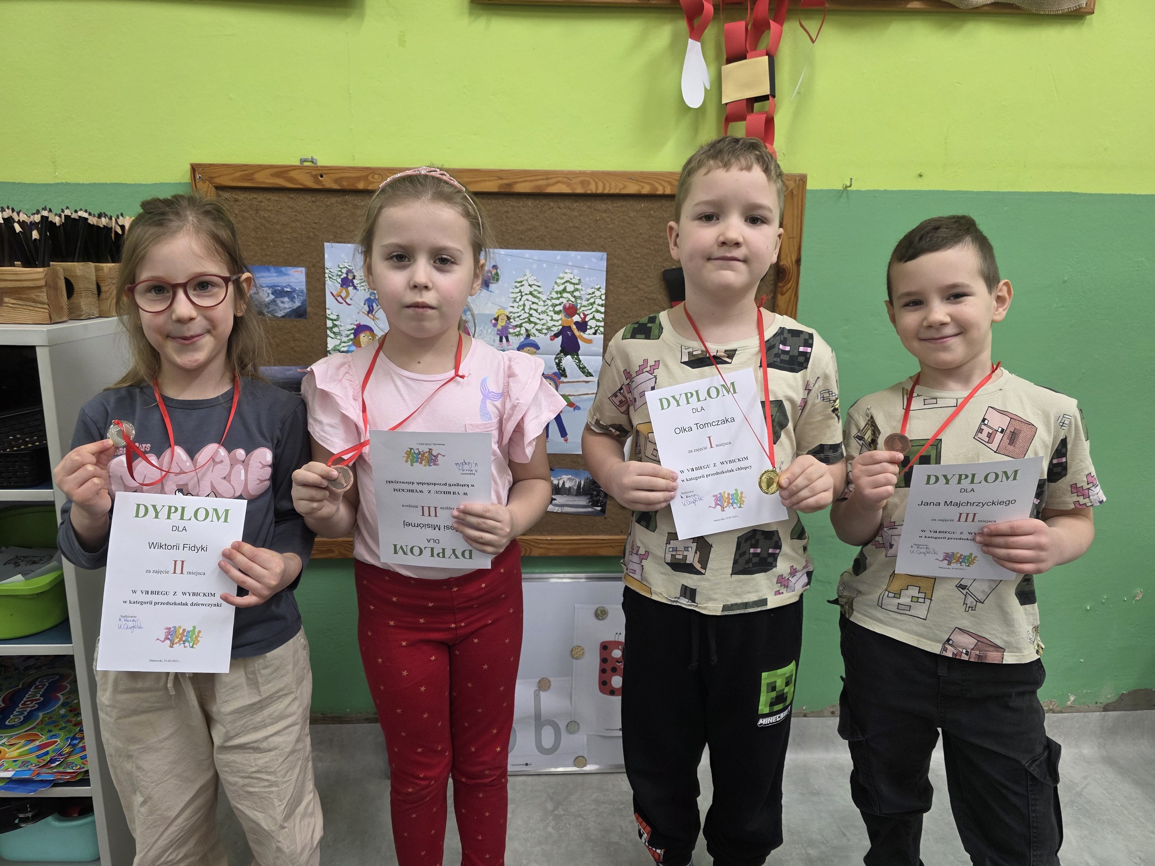 Dzisiaj przedszkolaki z najstarszej grupy – „JEŻYKI", które wzięły udział w VII Biegu z Wybickim organizowanym przez Szkołę Podstawową w Manieczkach otrzymały medale i pamiątkowe dyplomy. Wręczenia dokonali pani Marzena Karcz i pan Krzysztof Czaplicki.